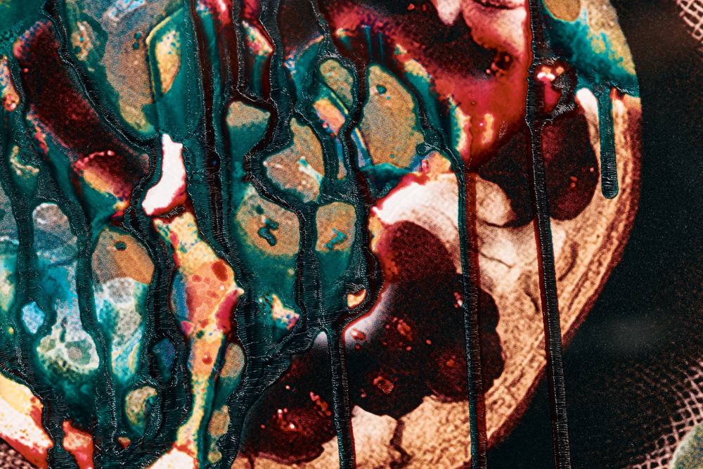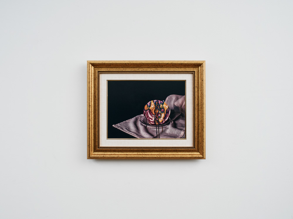 Cette série est une tentative d’invoquer cette voix du silence — une voix immobile — dans le présent. Chaque œuvre de la série STILL VOICE commence par une photographie haute résolution, soigneusement composée avec des objets rappelant le bodegón baroque espagnol : récipients, fruits, fleurs — vestiges d’un langage visuel symbolique.